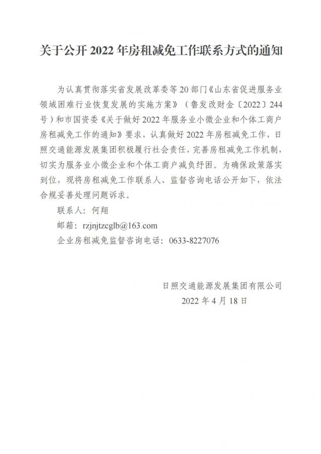 重大事項(xiàng)——關(guān)于公開(kāi) 2022 年房租減免工作聯(lián)系方式的通知