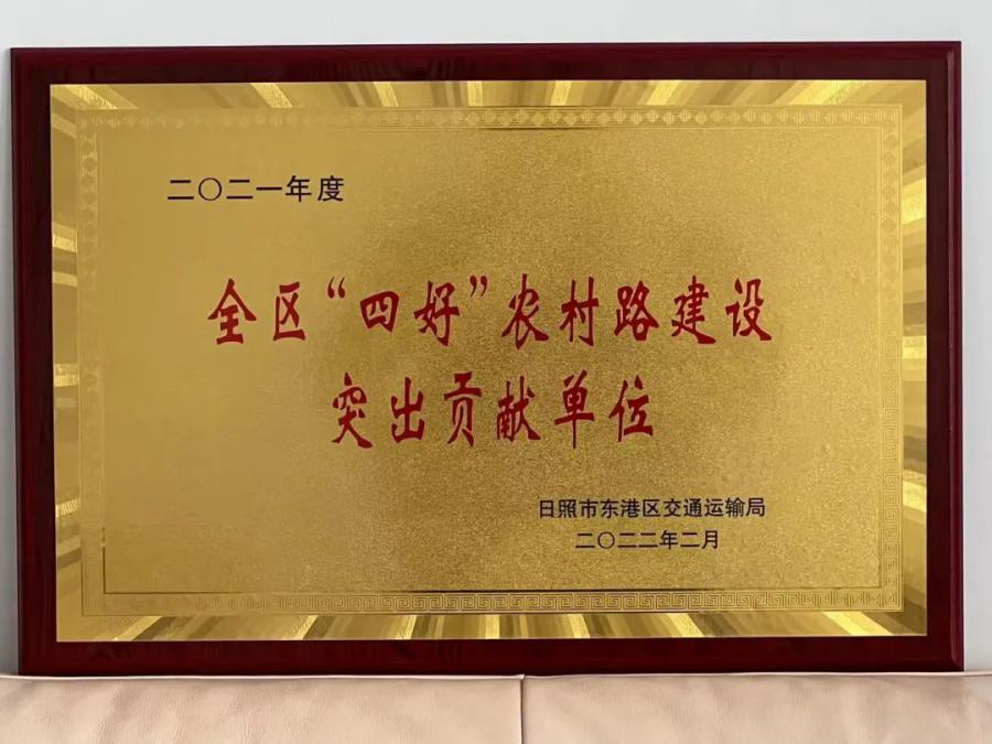 建設公司連續(xù)三年承建東港區(qū)農(nóng)村公路新建、改建工程,凝心聚力、擔當作為,圓滿完成了各項施工任務,累計道路128條,里程全長209.298km,完成投資2.9億元。日前,東港區(qū)交通運輸局對2021年度交通運輸工作先進集體給予表揚,建設公司榮獲東港區(qū)“四好”農(nóng)村路建設突出貢獻單位。