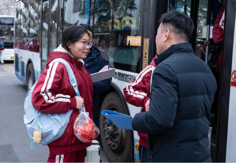 為保障學(xué)生順利乘車,直通鄉(xiāng)鎮(zhèn)通學(xué)“定制公交”于15:10早早就位,為學(xué)生提供從校門到家門,零換乘、快直達(dá)的公交出行服務(wù)。同時(shí),每車配備一名公司安全管理人員現(xiàn)場(chǎng)指揮引導(dǎo),幫助提供問題咨詢、行李搬運(yùn)服務(wù),并引導(dǎo)學(xué)生安全文明有序乘車。針對(duì)“定制公交”無法完全覆蓋的河山鎮(zhèn)、兩城鎮(zhèn)等鄉(xiāng)鎮(zhèn),日照公交貼心優(yōu)化C101路、C111路守時(shí)待命,努力做到涉及鄉(xiāng)鎮(zhèn)無遺漏、公交運(yùn)營(yíng)全覆蓋,準(zhǔn)時(shí)高效快速到達(dá),真正實(shí)現(xiàn)“家長(zhǎng)放心、學(xué)生舒心、學(xué)校省心”。15:50,滿載學(xué)生的公交車從日照一中西校區(qū)的西門按計(jì)劃發(fā)出。