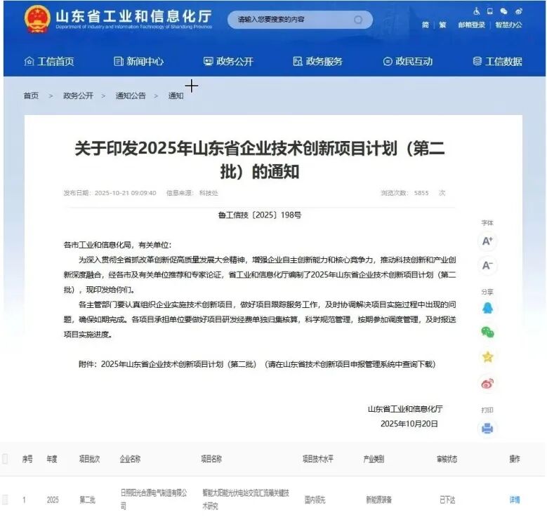 近日,山東省工信廳公布2025年山東省企業(yè)技術(shù)創(chuàng)新項(xiàng)目計(jì)劃(第二批),集團(tuán)陽光合源公司申報(bào)的《智能太陽能光伏電站交流匯流箱關(guān)鍵技術(shù)研究》課題成功入選。