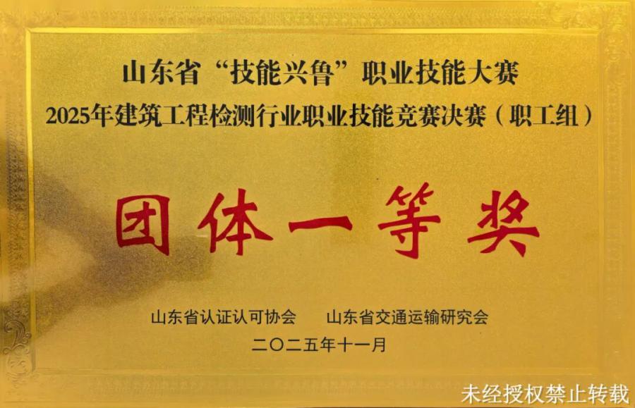 近日,2025年山東省“技能興魯”建筑工程檢測行業(yè)職業(yè)技能競賽落幕。山東交建集團代表隊斬獲職工組團體一等獎,1人榮獲個人一等獎,1人榮獲個人二等獎。