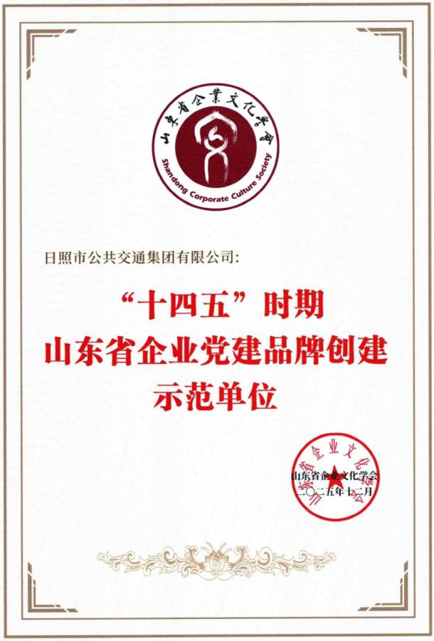 日照市公共交通集團(tuán)有限公司榮獲山東省企業(yè)文化學(xué)會“十四五”時期山東省企業(yè)黨建品牌創(chuàng)建示范單位